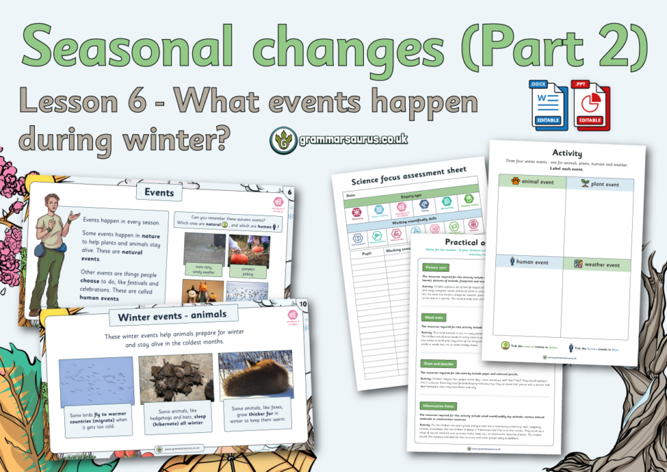 This editable lesson pack focuses on exploring events that happen in winter and developing the skills of identifying and classifying, and interpreting and communicating results.