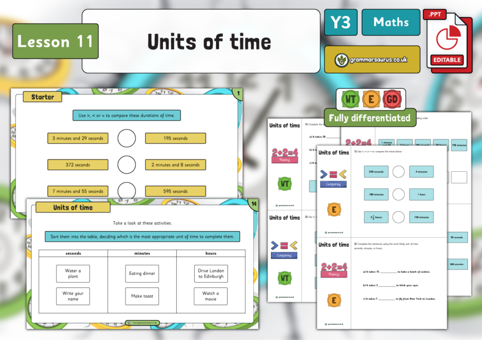 In this lesson, children focus on comparing lengths of time using different units of time. They take part in more practical activities to understand durations of time and use estimation. Children also explore measuring in appropriate units of time for given tasks.