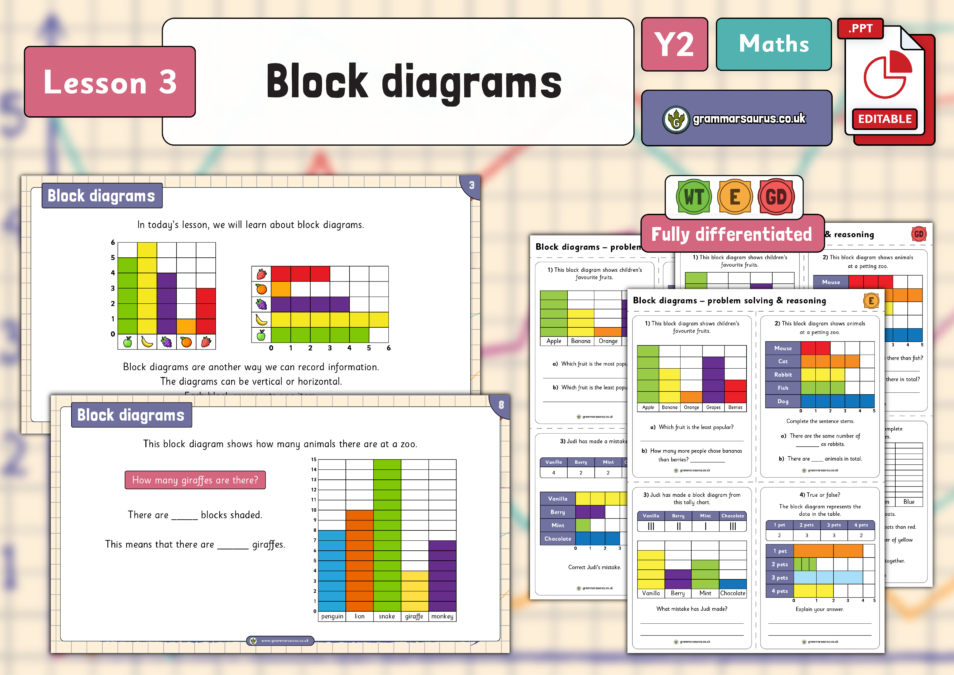 In this lesson, children are introduced to block diagrams as another form of representing data. This lesson focusses on using blocks that represent one of an object and how to interpret the data before create their own block diagrams to represent data.