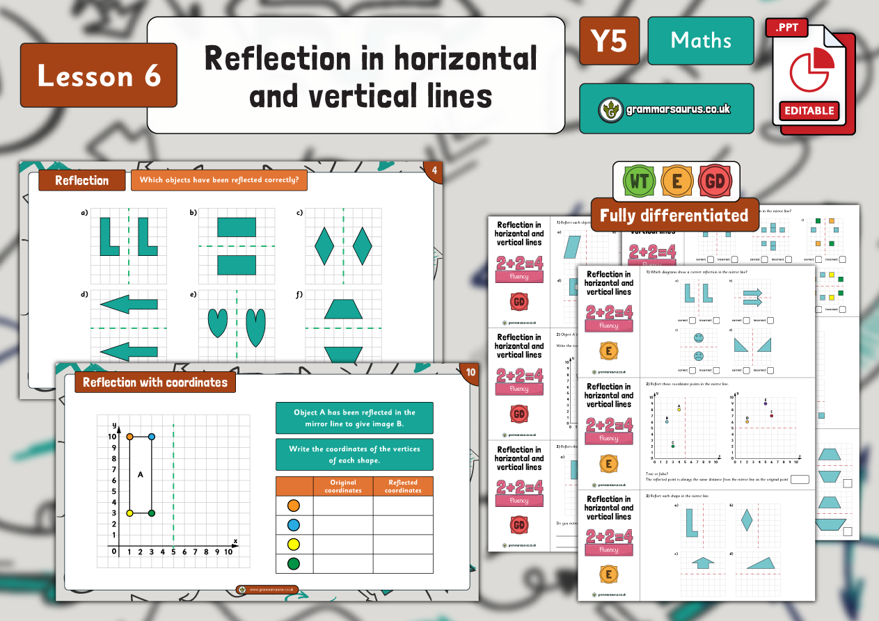 In this lesson, build on learning from previous years to find any lines of symmetry in a 2D shape. Children recap what a line of symmetry is and find simple lines of symmetry before finding multiple lines of symmetry in one shape. This lesson includes a teaching presentation accompanied by differentiated activities with a range of fluency, reasoning and problem-solving questions, as well as 3 sets of extra fluency questions.