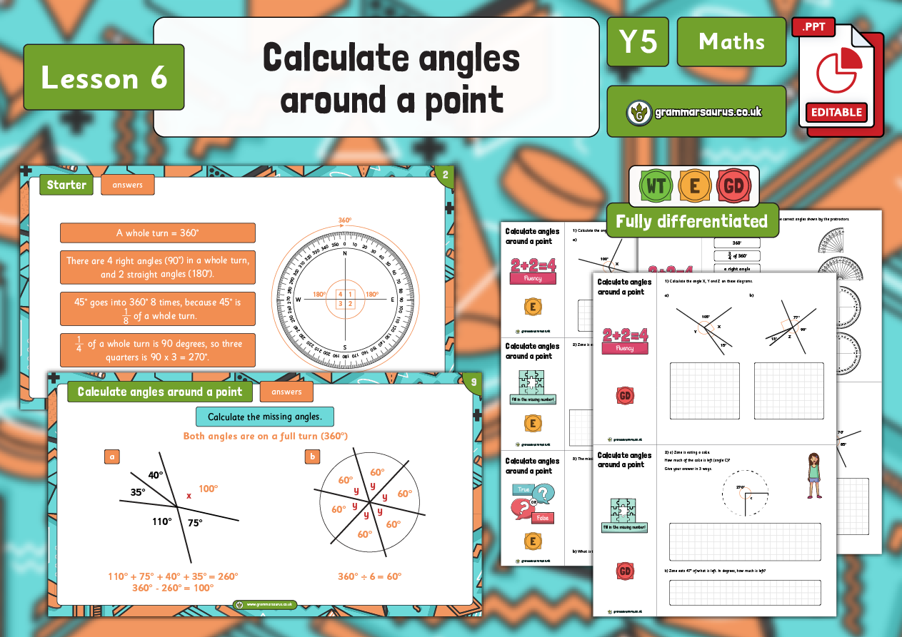 In this lesson, children classify angles using learning from the previous step and are introduced to reflex angles. They classify acute, obtuse and reflex angles visually and move on to classifying numeral angles, such as describing that 117° is an obtuse angle because it is greater than 90° but less than 180°. This lesson includes a teaching presentation accompanied by differentiated activities with a range of fluency, reasoning and problem-solving questions, as well as 3 sets of extra fluency questions. National curriculum objectives