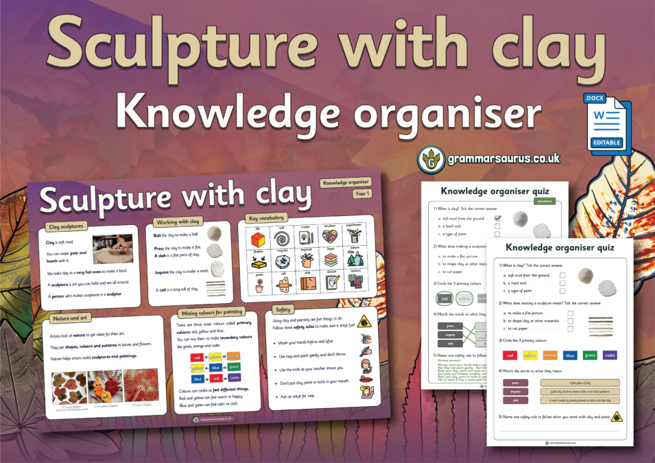 This editable knowledge organiser accompanies our Year 1 ‘Sculpture with clay’ unit lessons.