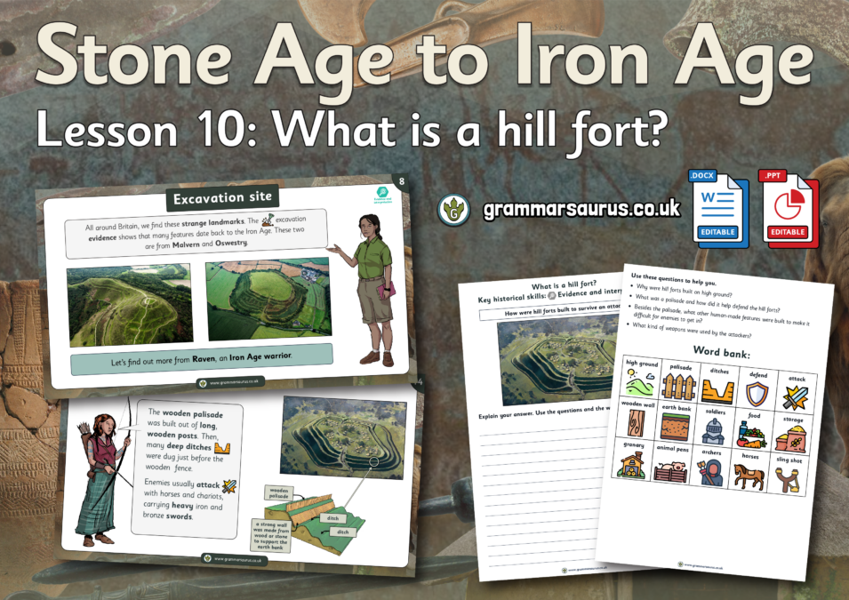 This editable lesson pack focuses on what a hillfort was.The file includes the following resources: