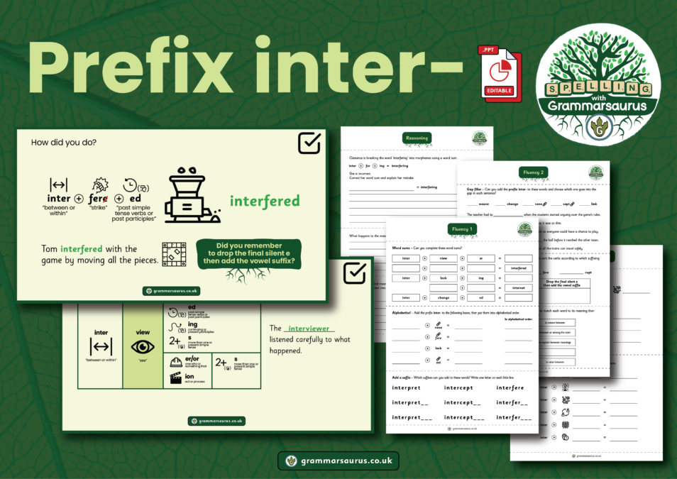 In this objective, children will learn how to add prefix inter- to bases and stems to form new words. Over three 20-minute lessons, they will: