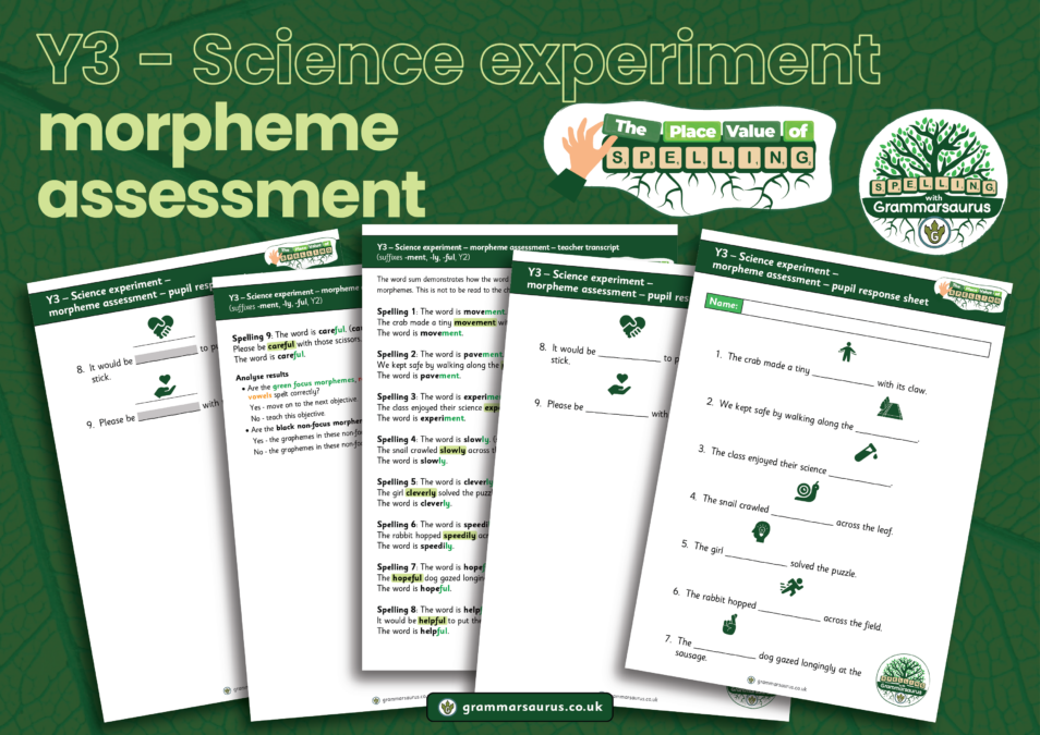 Use the science experiment morpheme assessment to assess the suggested morphemes* needed to write about a science experiment. *suffix -ment, suffix -ly and suffix -ful (Y2)