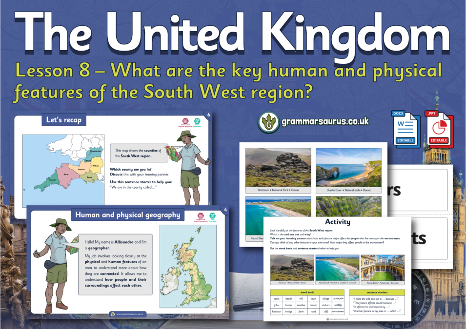 This geography lesson focuses on the human and physical geographical features of the South West region of England.