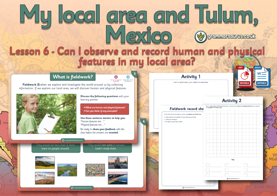 The file contains the following resources: - an editable lesson presentation - editable activity worksheets (1 and 2) - an editable lesson plan- editable practical activities and resources- fieldwork recording sheet- focus assessment sheet