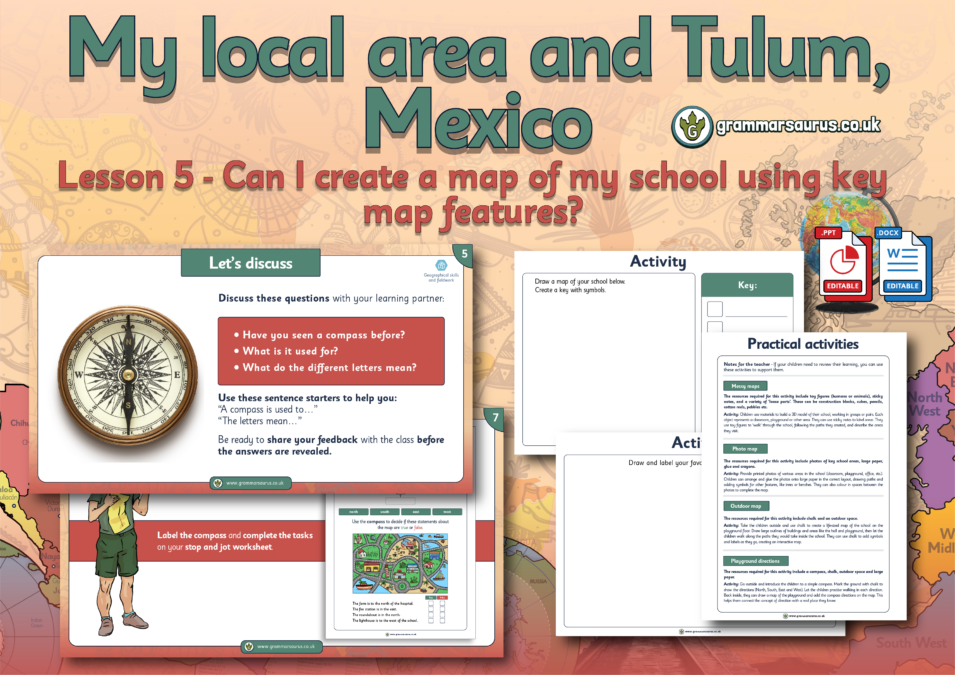 This adapted geography lesson focuses on applying geographical and map skills to create a map of the school and a key to show map symbols.