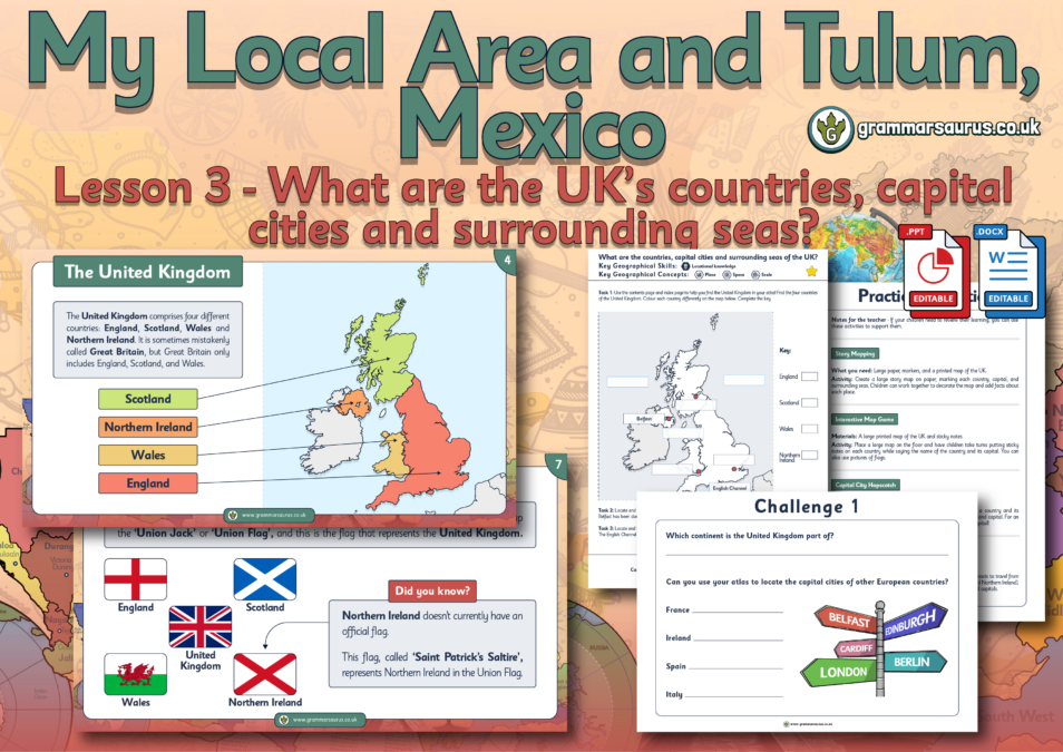This differentiated geography lesson focuses on the countries, capital cities and surrounding seas of the UK.