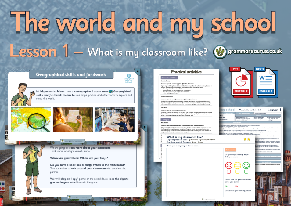 This geography lesson focuses on using maps to represent the classroom.