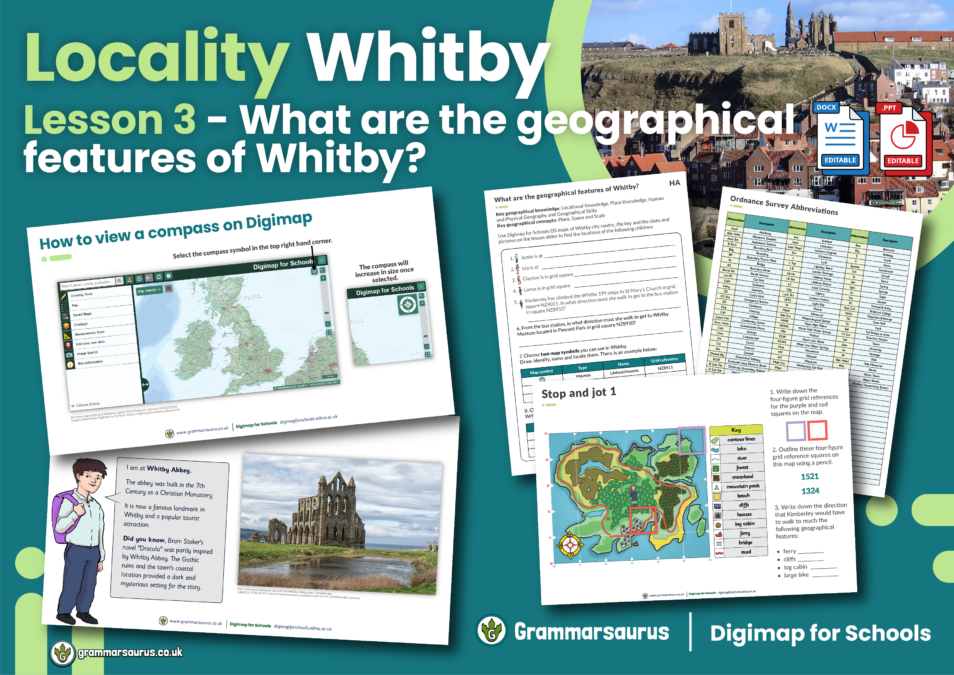 This differentiated geography lesson focuses on identifying and locating geographical features in Whitby using digital maps.
