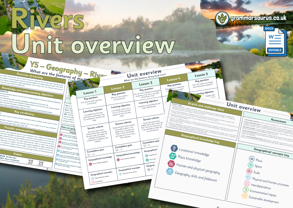 This editable unit overview provides a medium-term plan for the Y5 Geography Rivers topic.
