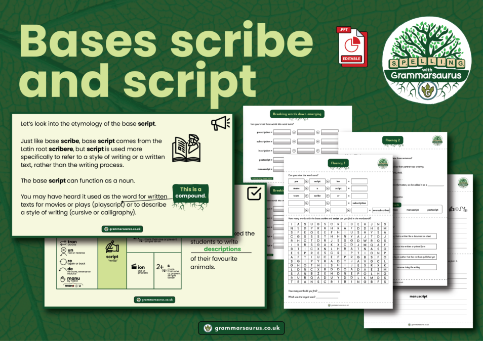 In this objective, which begins with a review lesson exploring morphemes learnt so far in Year 3, children will be introduced to alternate bases when they meet bases scribe and script. They will learn how to add the bases scribe and script to other bases and stems. Over three 20-minute lessons, they will: