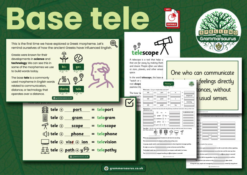 A range of practical activities including etymology flashcard designing, tele definition posters and and tele word bingo