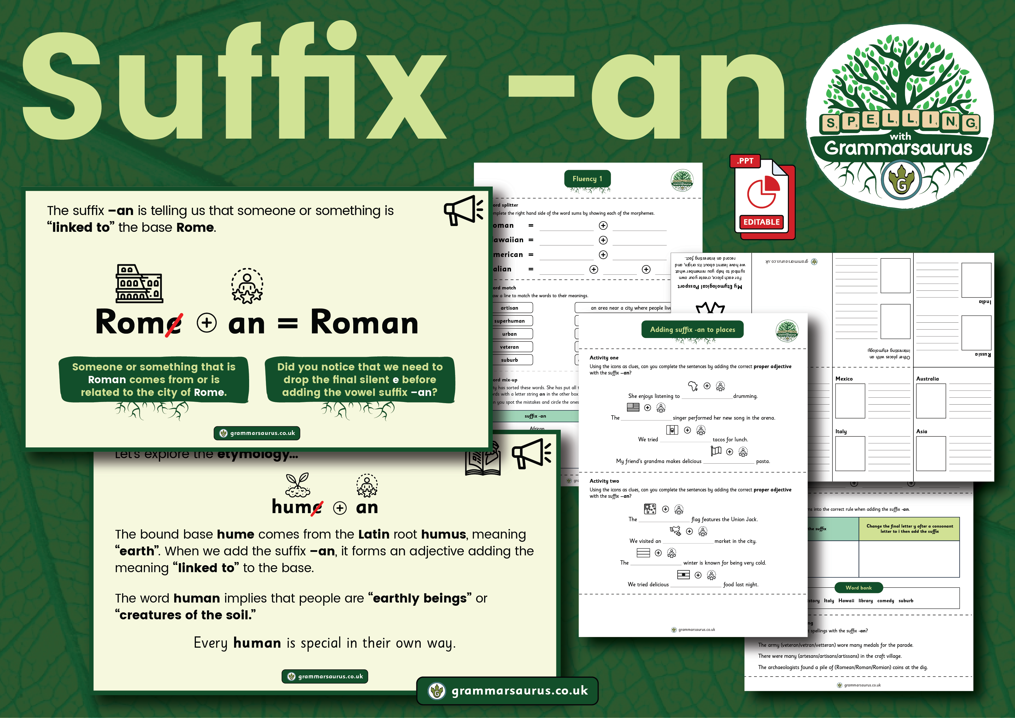 *suffix -ed , suffix -ing and suffixes -er, -or (Y2).