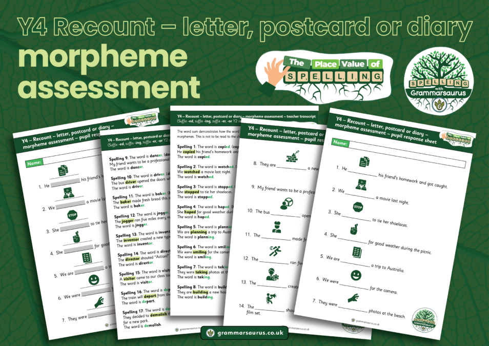 Use the Recount - letter, postcard or diary - morpheme assessment to assess the suggested morphemes* needed to write a recount - letter, postcard or diary.