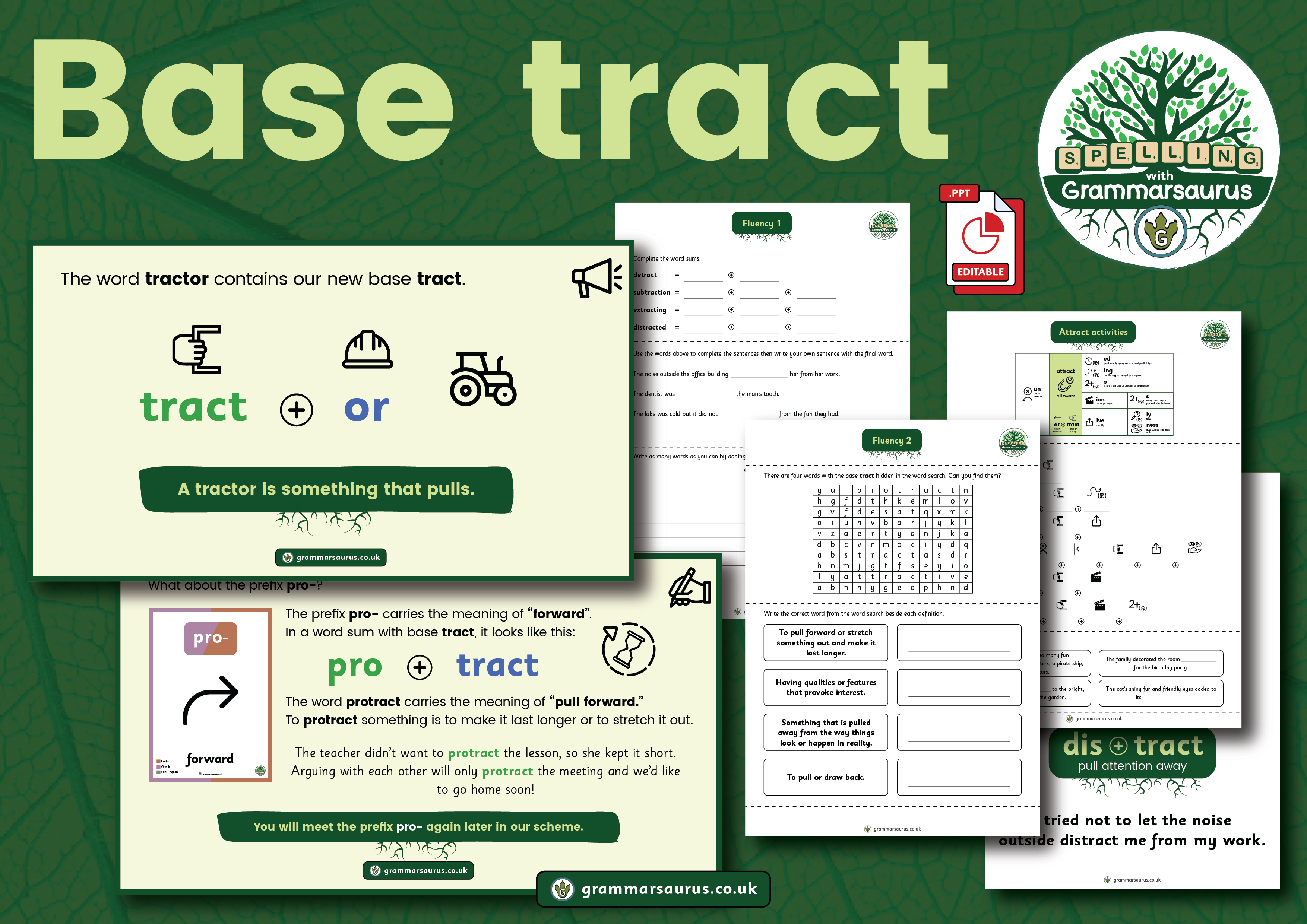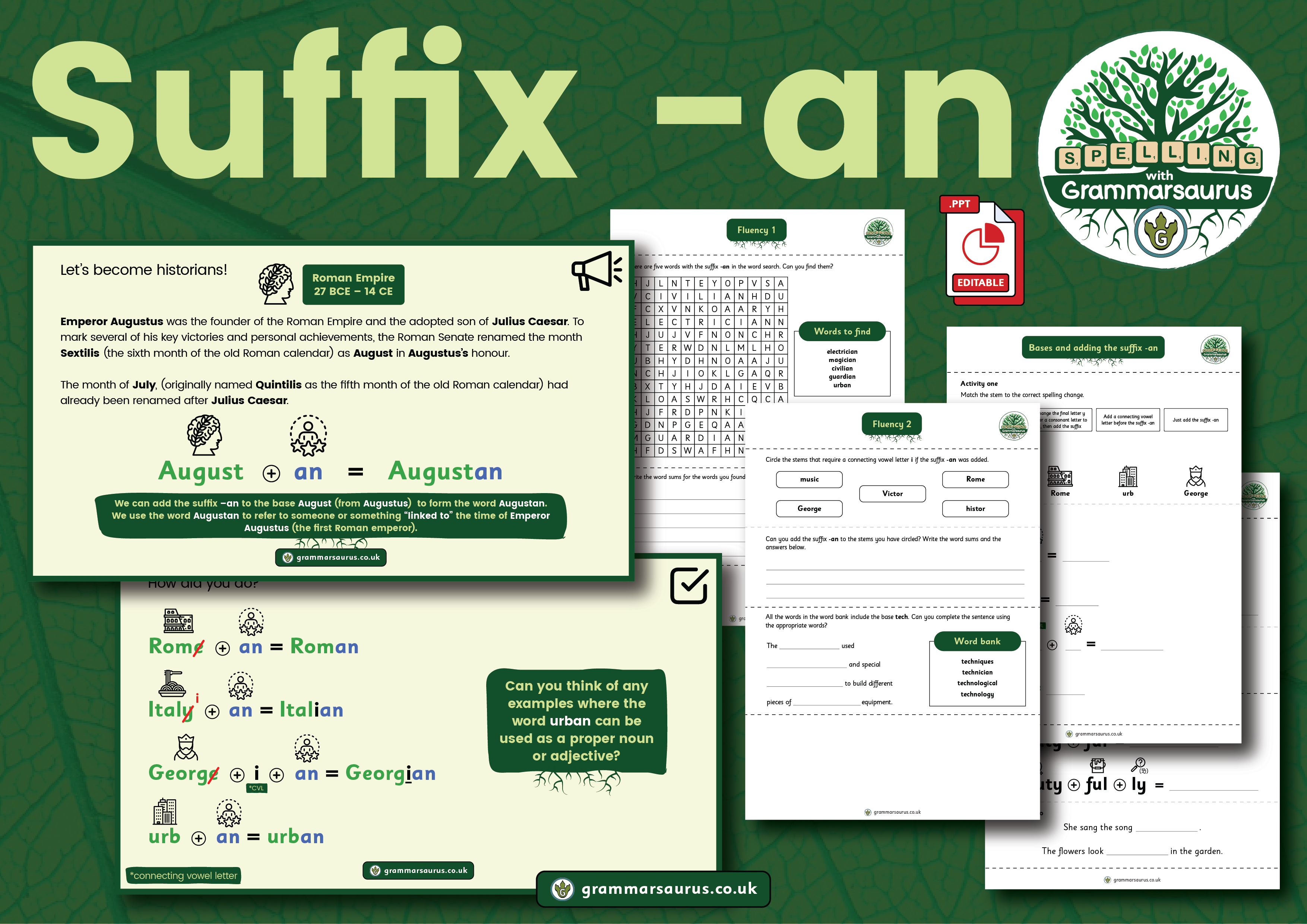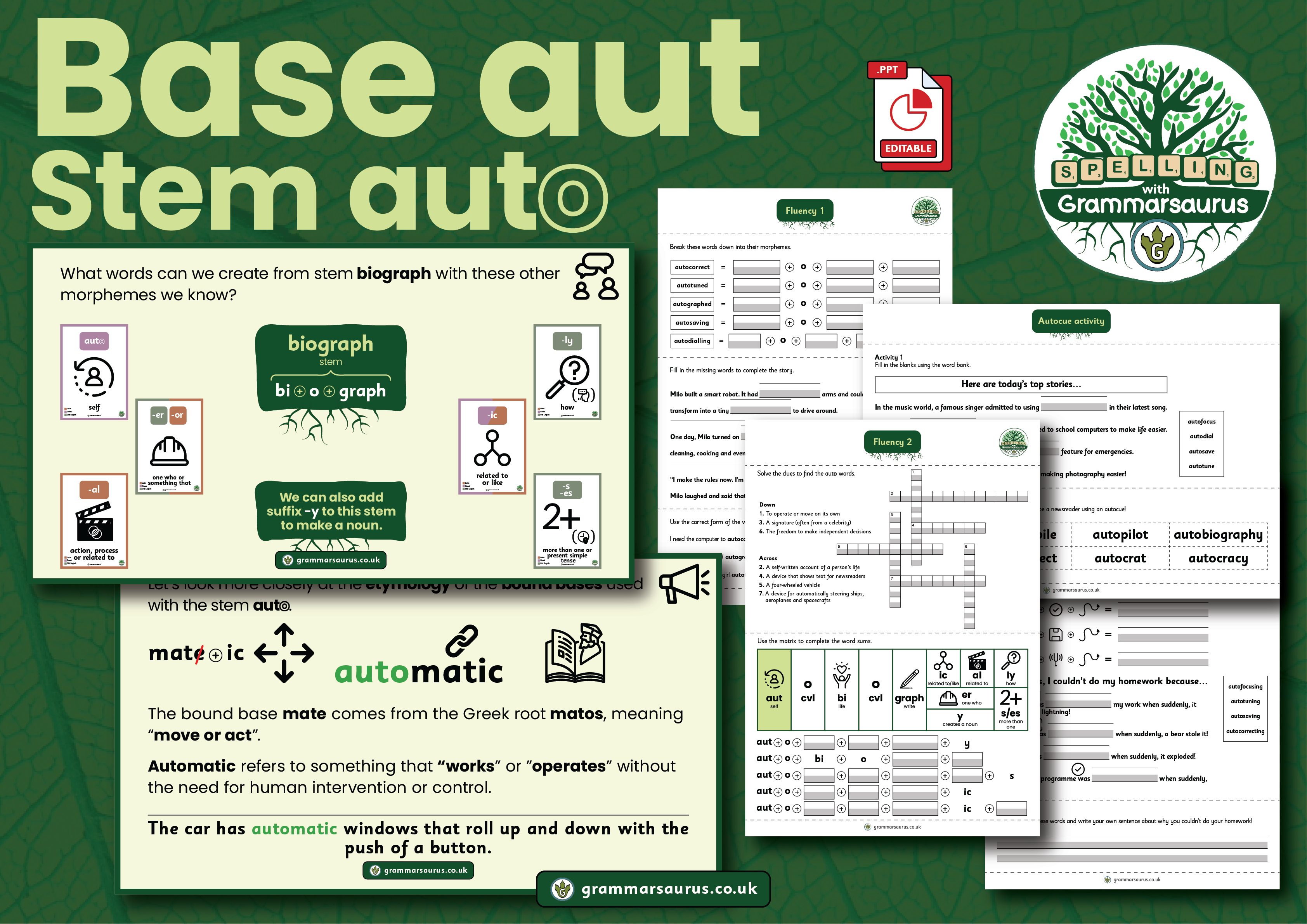 *suffix -ed, suffix -ing, suffix -er, -or (Y2) and prefix de- (Y3)