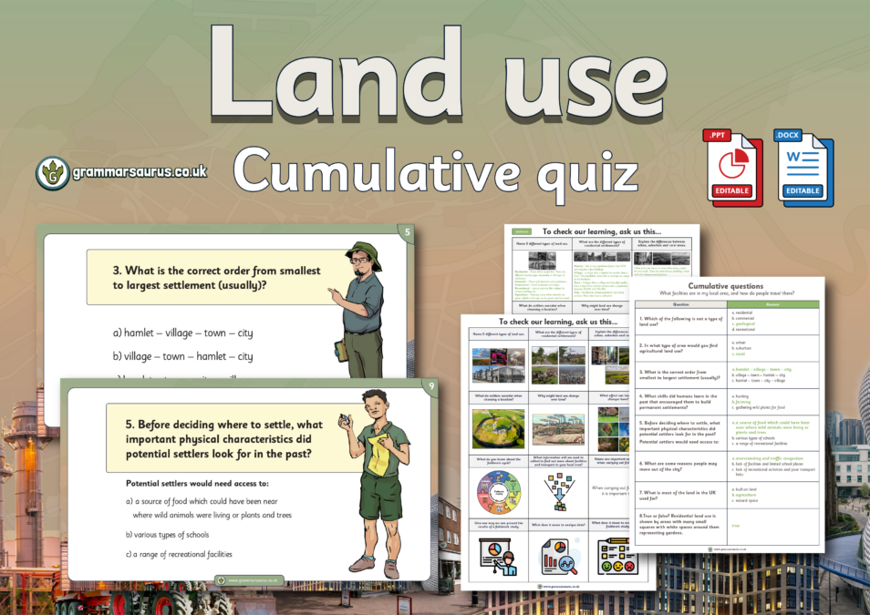 This is an editable cumulative quiz with questions that can be used to assess children throughout the Y3 Land use (fieldwork unit) topic. The quiz questions will link directly to each objective.