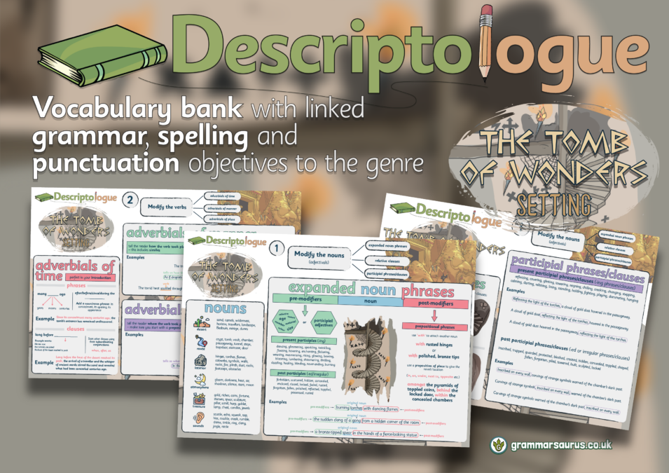 Our descriptologue resource is a comprehensive document comprising of a vocabulary bank with linked spelling, punctuation and grammar objectives. This tabletop resource has been designed to support creative writing by expanding pupils’ descriptive vocabulary, whilst experimenting with sentence structure, as well as supporting teachers with how to weave a range of National Curriculum spelling, punctuation and grammar objectives into this specific text type and genre.