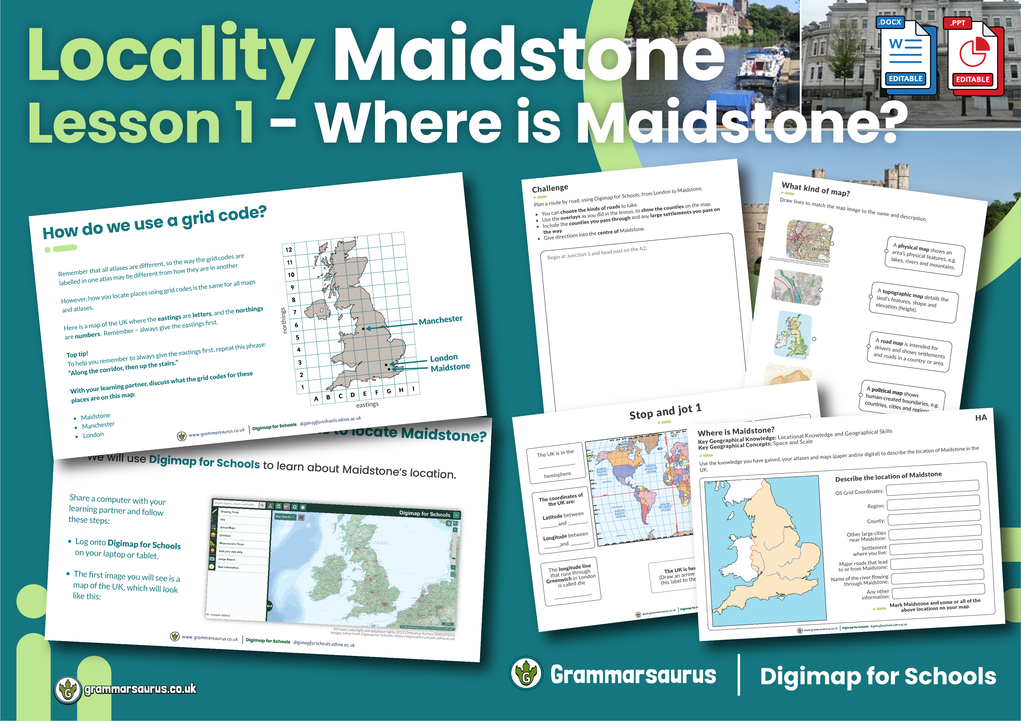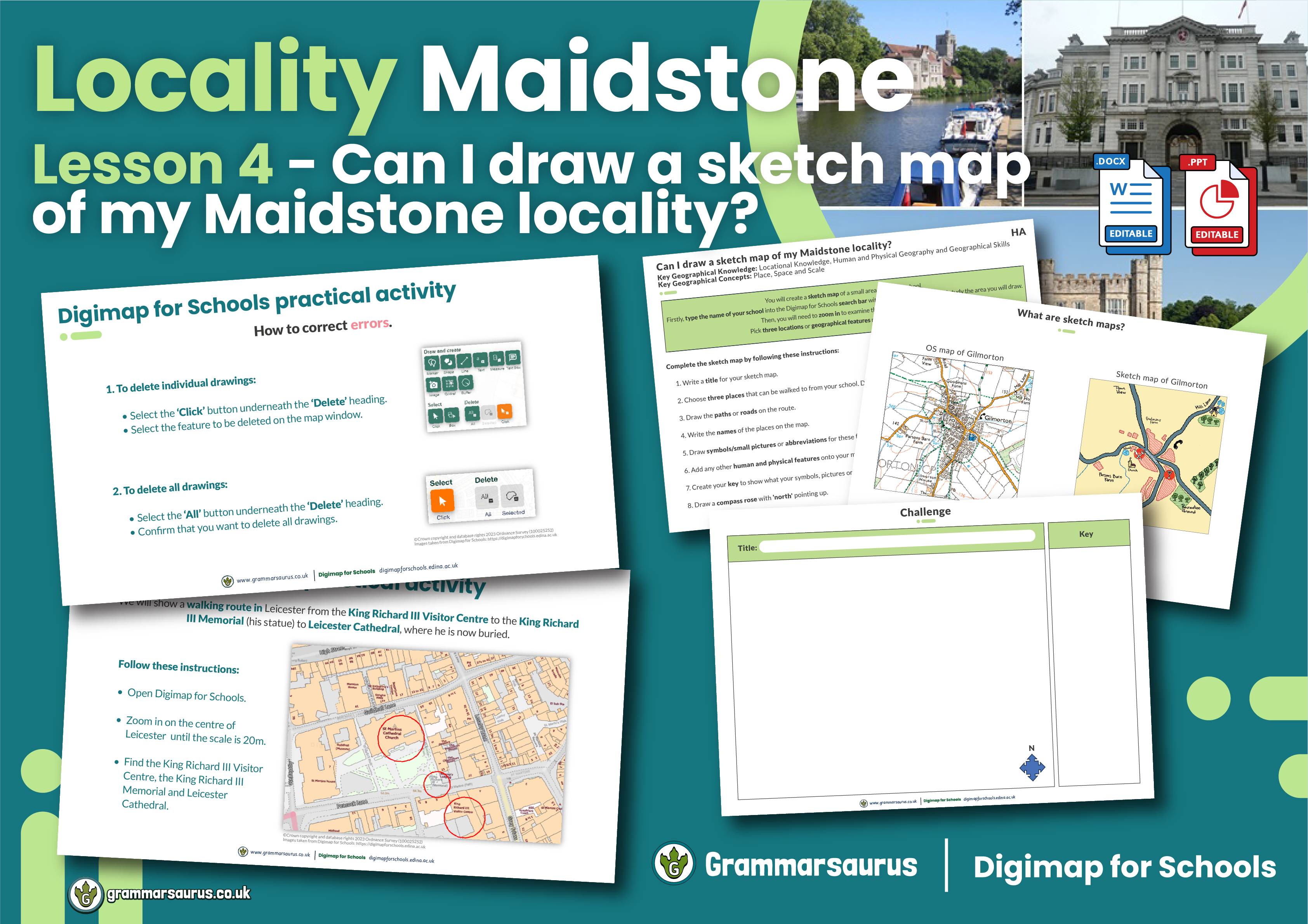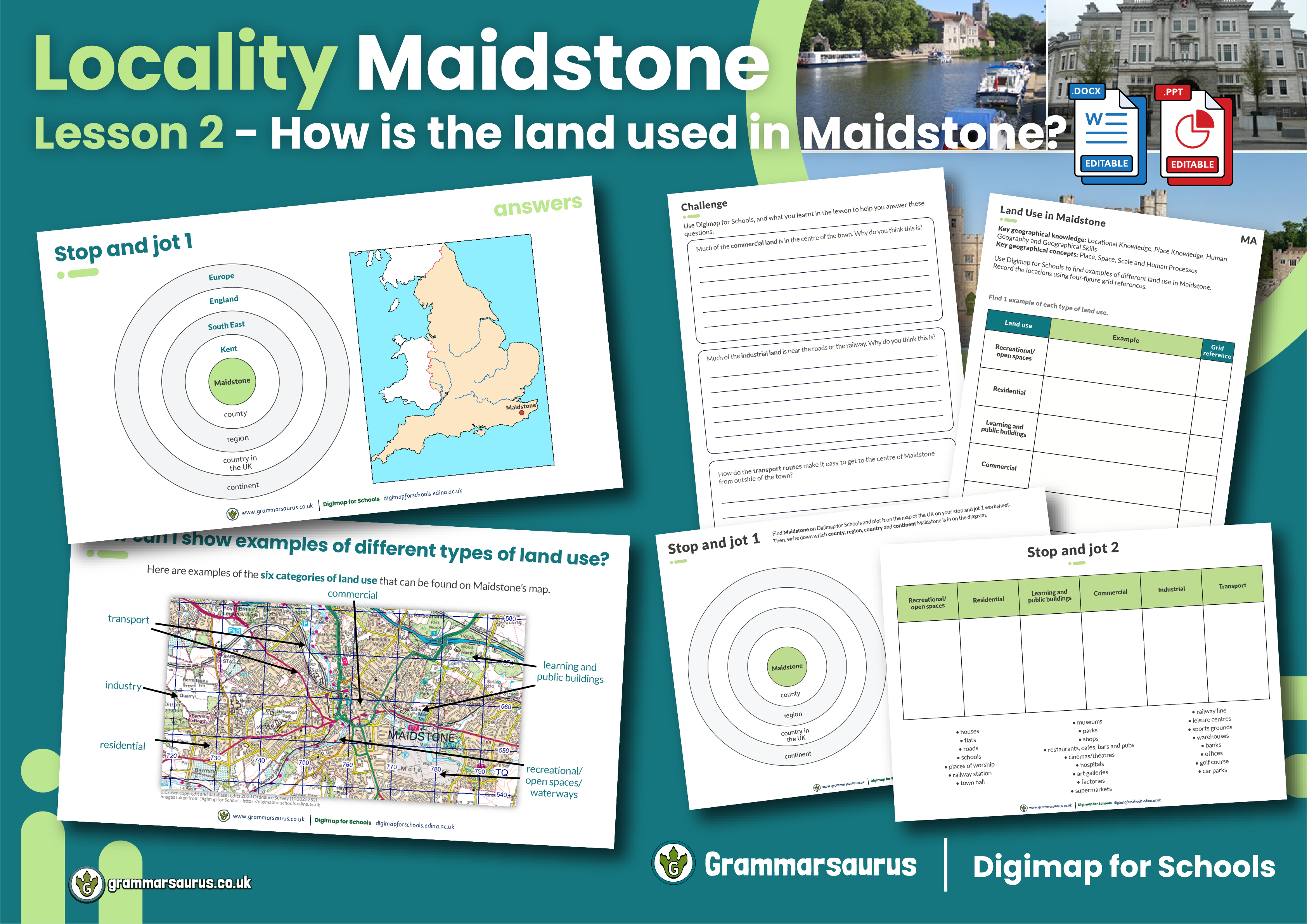 This differentiated geography lesson focuses on identifying and locating geographical features in Maidstone using digital maps.