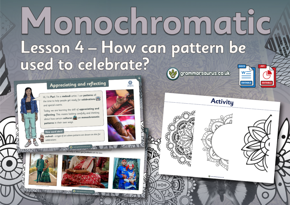 This lesson focuses on the core art skill of creating. Children will learn about Mehndi designs and how artists use henna to create patterns for celebrations. They will create their own decorative designs inspired by Mehndi, thinking carefully about line, shape and space to make their artwork expressive and meaningful.