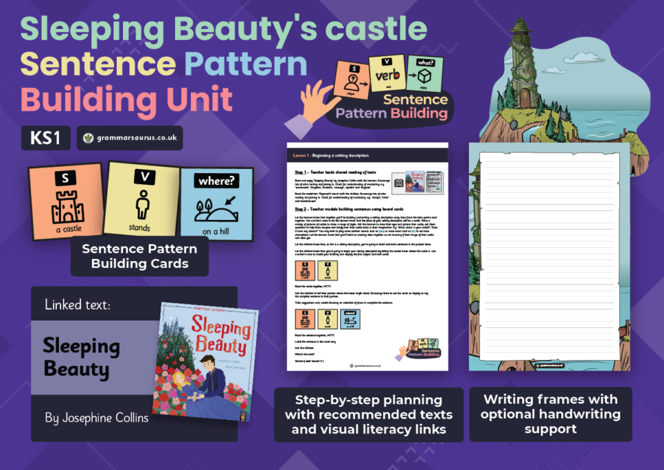This Sentence Pattern Building Unit is based on the book 'The Great Explorer’ by Chris Judge. Unit guide Grammarsaurus unit guides are designed to support teachers in creating a bespoke learning journey for their children. Each step of the journey has its purpose outlined along with our recommendations. Following that, the structure of the step is detailed in an easy-to-follow sequence, and to make things even simpler for you, we’ve exemplified this sequence with a suggested lesson fit for this unit. Unit guides offer practical examples using concrete, pictorial and abstract resources to support all learners. Sentence Pattern Building Unit Extension Pack The Sentence Pattern Building Unit Extension Pack supports idea generation and gives pupils the opportunity to build and orally rehearse sentences before writing. It is less scaffolded than the original Sentence Pattern Building Unit, offering more options and greater flexibility for sentence building, thereby encouraging learner independence. This pack is designed to help lower and middle ability pupils succeed in lessons drawn from the unit guide. Sentence Pattern Building Unit The original Sentence Pattern Building Unit is also available for SEN, EAL and new to English pupils and is ideal for pre-teaching and intervention. It includes ready-made sentences and clear teacher guidance to support children in building and transcribing sentences, helping them understand sentence patterns and increasing their chances of success in lessons from the unit guide.