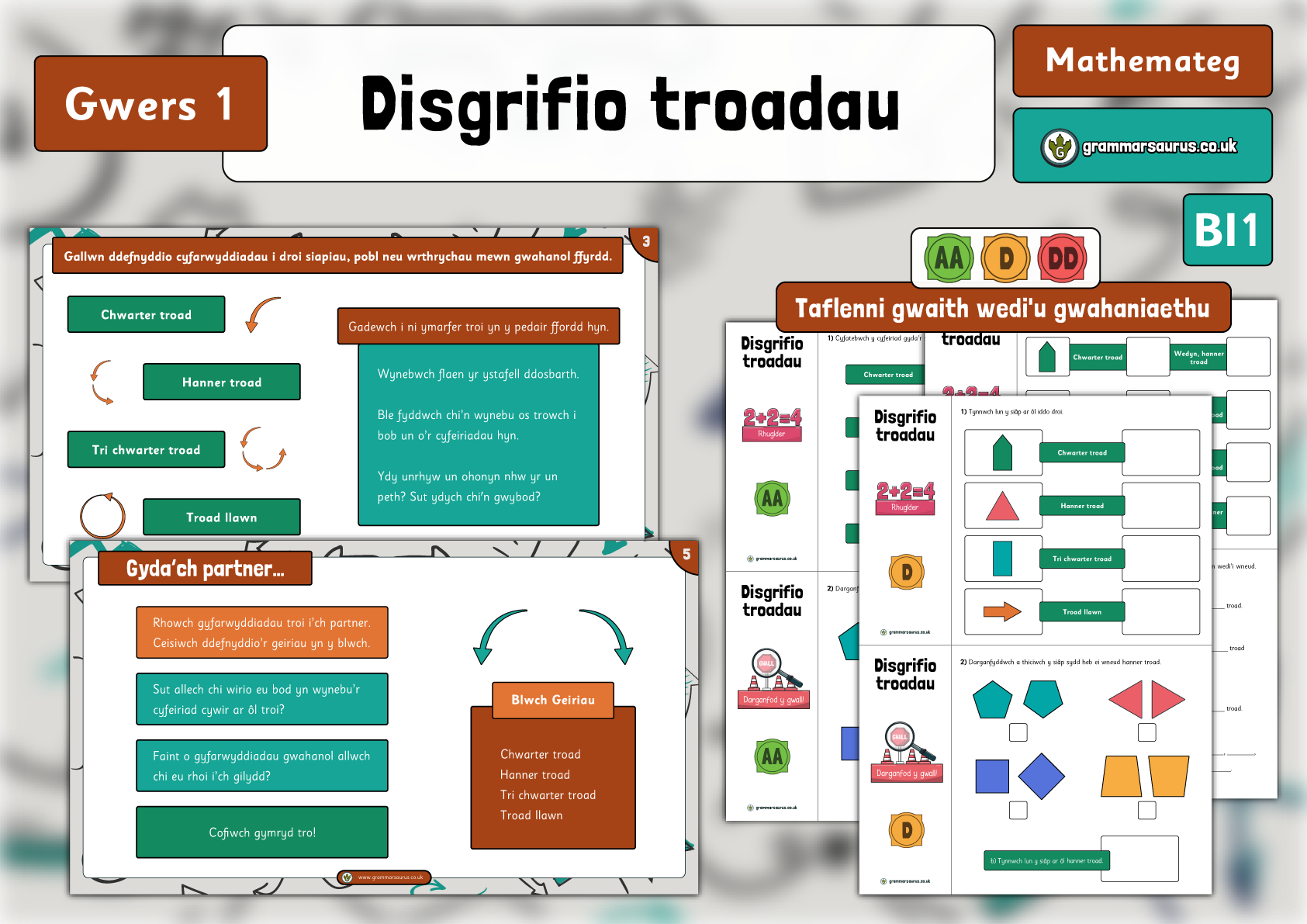 Blwyddyn 1 – Disgrifio troadau (1) – Gwers 2