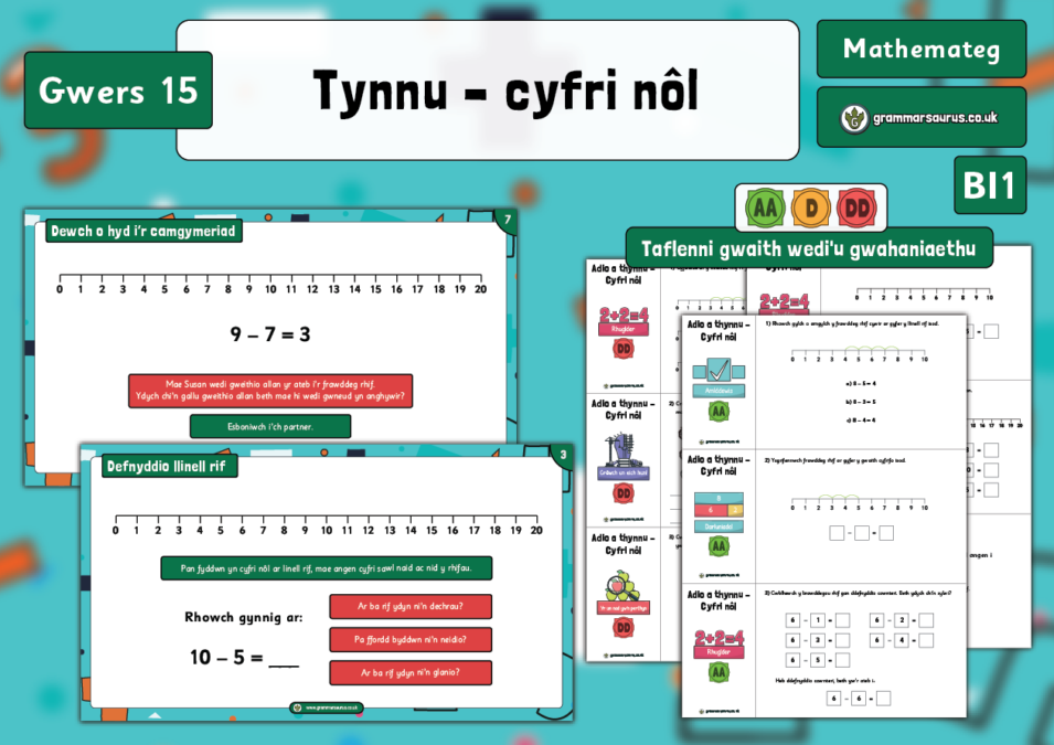 Blwyddyn 1 – Tynnu – cyfri nôl – Gwers 15