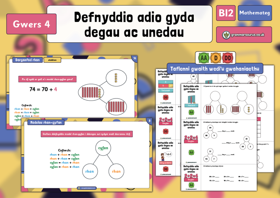 Blwyddyn 2 – Defnyddio adio gyda degau ac unedau – Gwers 4