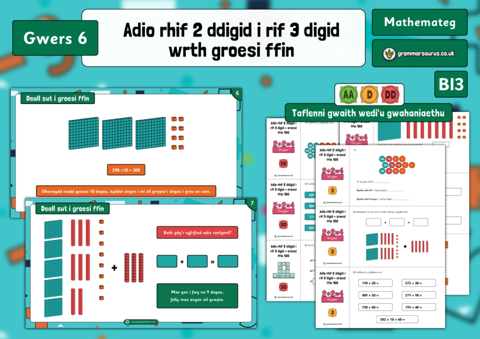 Blwyddyn 3 – Adio rhif 2 ddigid i rif 3 digid wrth groesi ffin – Gwers 6