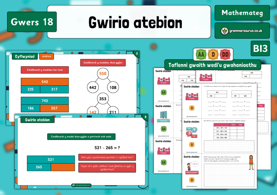 Blwyddyn 3 – Gwirio atebion – Gwers 18