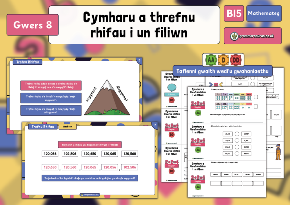 Blwyddyn 5 – Cymharu a threfnu rhifau i un filiwn – Gwers 8