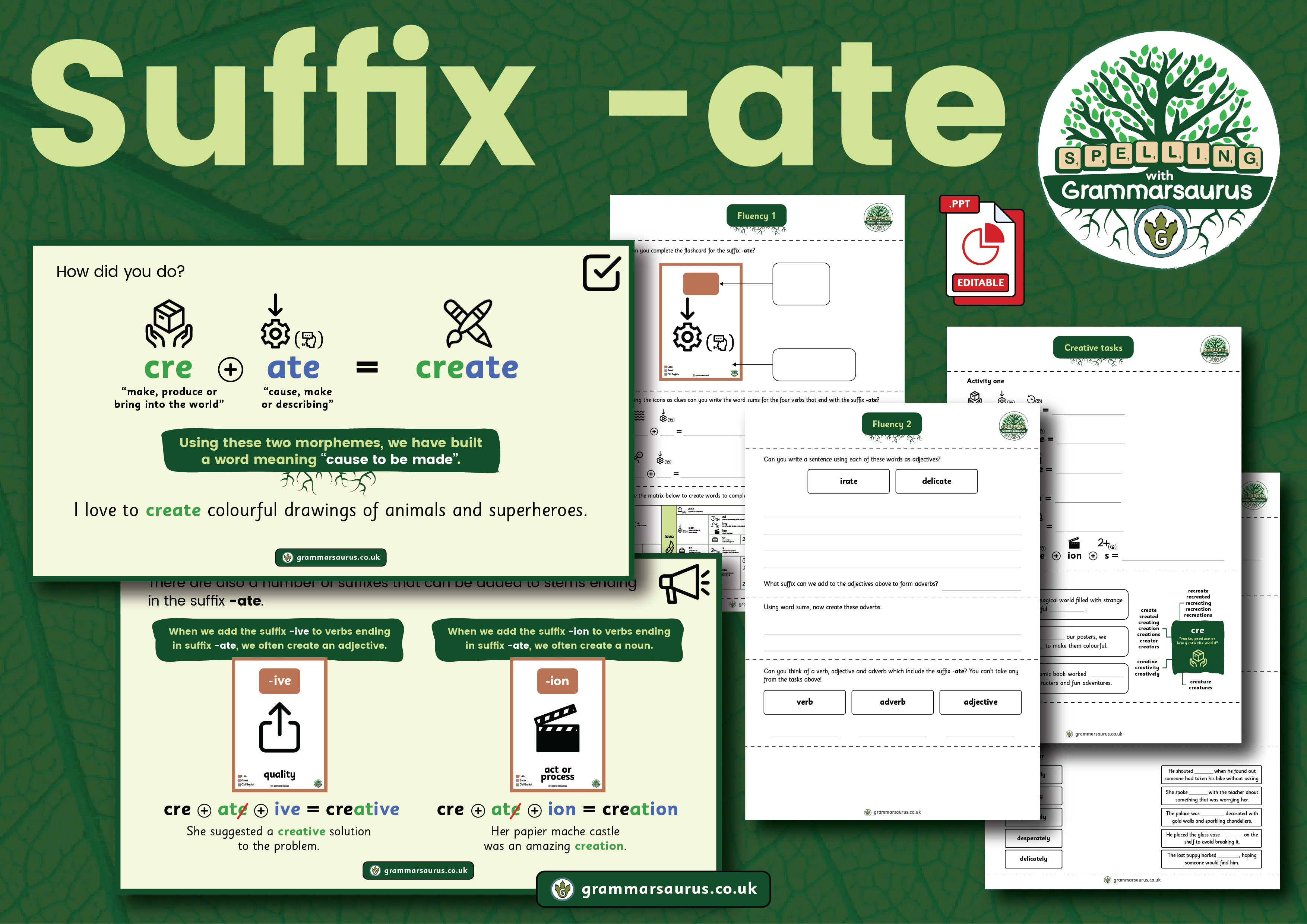 Resources included: · Editable PowerPoint covering 4 lessons (20 minutes each) · Teacher guidance with optional activities · Supporting worksheets · A range of practical activities including: creating a story chain using relevant words and a game to decide if a recognisable word has been formed when combining a base or stem with suffix -ance or suffix -ant