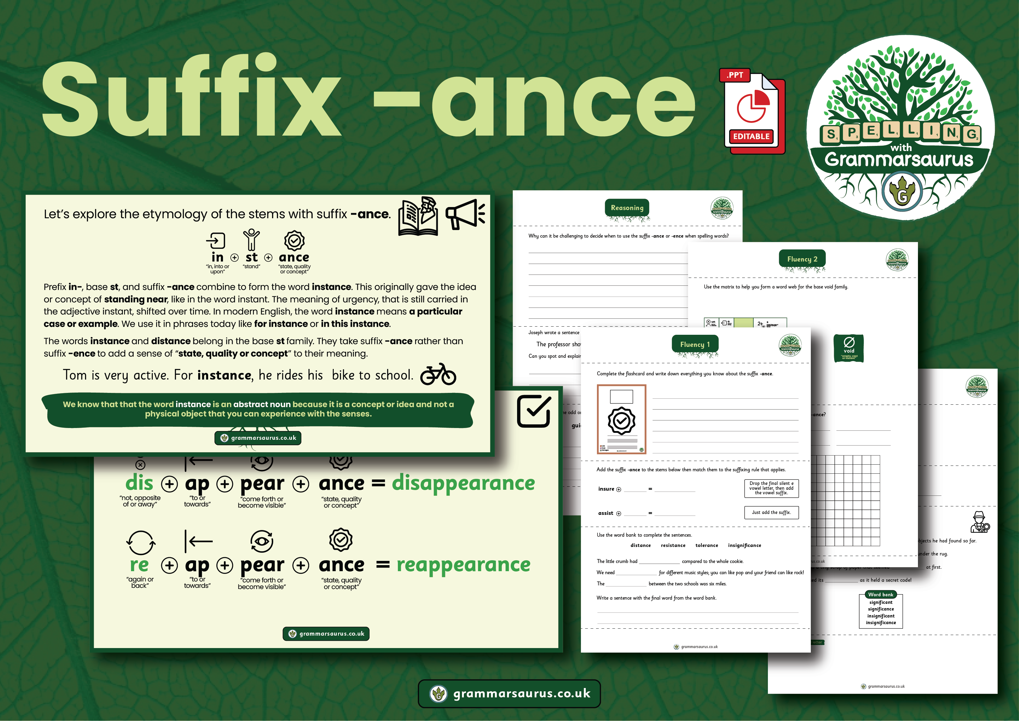 Resources included:· Editable PowerPoint covering 4 lessons (20 minutes each)· Teacher guidance with optional activities· Supporting worksheets organised into lessons one to four· A range of practical activities, including an interactive washing line to build words with base pend meaning "hang", Scenario Snap and a Splat Roland the Rodent quiz to sort bases and stem that take suffix -ent or -ant· 2 fluency activities (with answers)· A reasoning activity (with answers)...