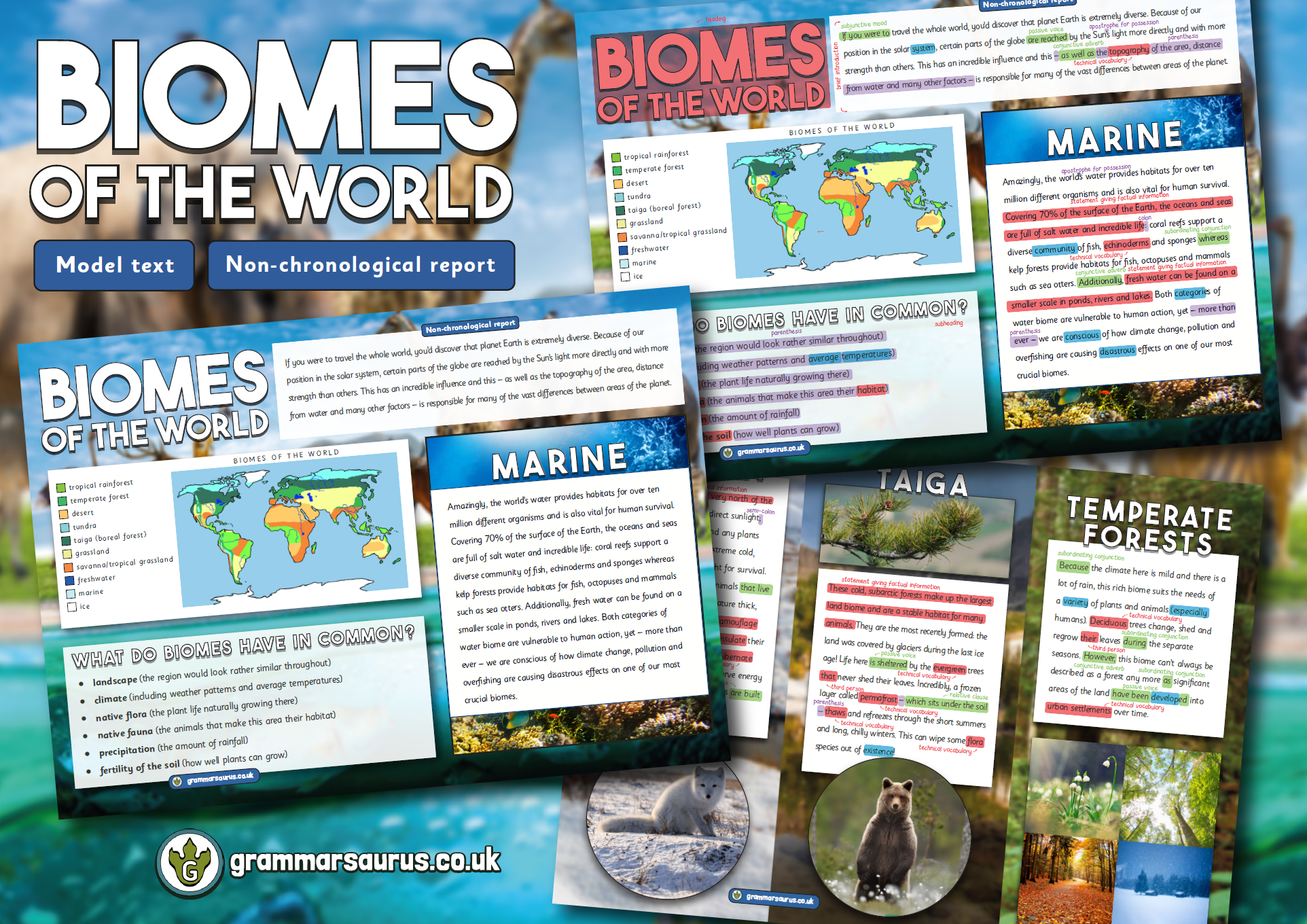 This model text is a non-chronological report about Ruth Bader Ginsburg. It has been written to meet the Year 6 expected standard and comes with a handy annotated version detailing the text-type specific features (red), grammar (green), punctuation (purple) and spelling (blue) teaching opportunities should you wish to use this text with your learners.