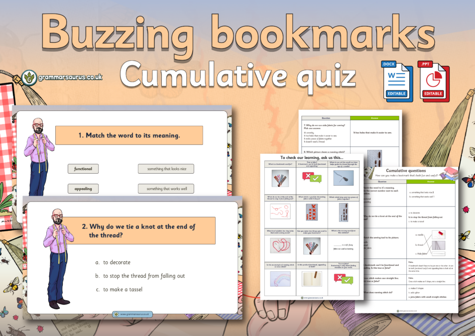 Teachers can use this cumulative quiz and the questions to assess children throughout the Year 2 'Buzzing bookmarks' unit. The cumulative quiz and questions can also be used at the end of each lesson to give immediate feedback to inform future planning and identify children who do not understand.