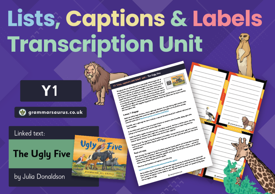 This unit is based on the book ‘The Ugly Five’ by Julia Donaldson. This unit is designed to provide lots of engagement with the text, oral activities and transcription of lists, captions and labels. These units are recommended to be completed to develop children’s transcription skills before moving on to our PVPG units....