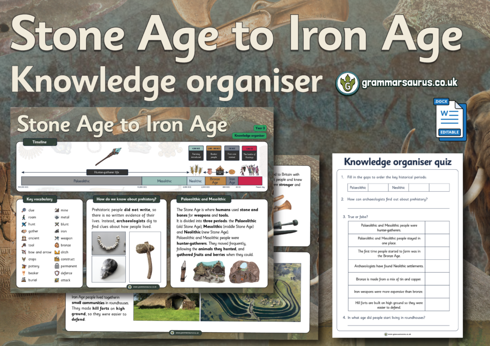 This editable knowledge organiser accompanies our Year 3's Stone Age to Iron Age lessons.