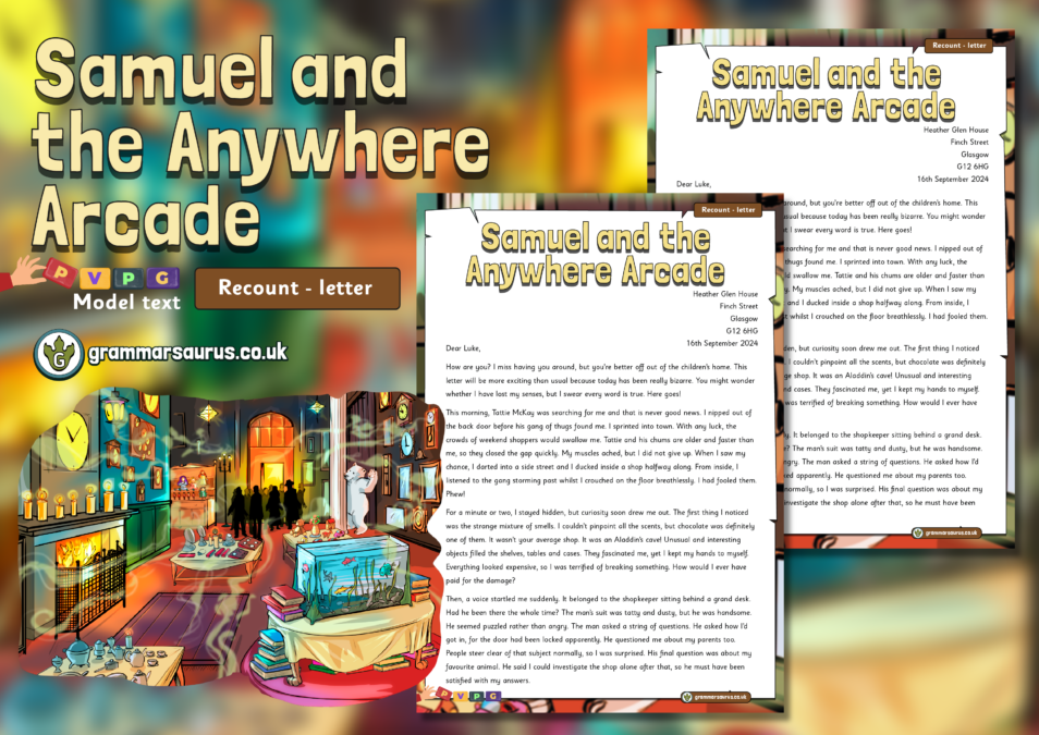 This model text is a letter written in the role of a boy who discovers a mysterious and enchanted shop. It is a simplified text written to complement our Y5 Place Value of Punctuation and Grammar unit.