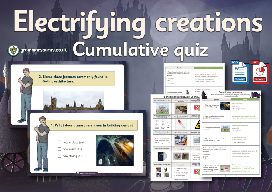 Teachers can use this cumulative quiz and the questions to assess children throughout the Year 6 'Electrifying Creations' unit. The cumulative quiz and questions can also be used at the end of each lesson to give immediate feedback or at the start of the lesson as retrieval or to inform future planning and identify children who do not understand.