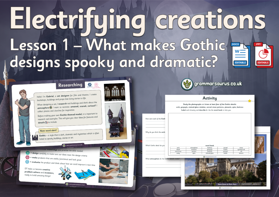 In this lesson, the children will learn about what a set designer does, the main features of Gothic architecture and architects. They will identify each feature and describe it using the appropriate vocabulary. They will reflect on which features they find most appealing and begin to think about how they could recreate them in their own Gothic-inspired model.