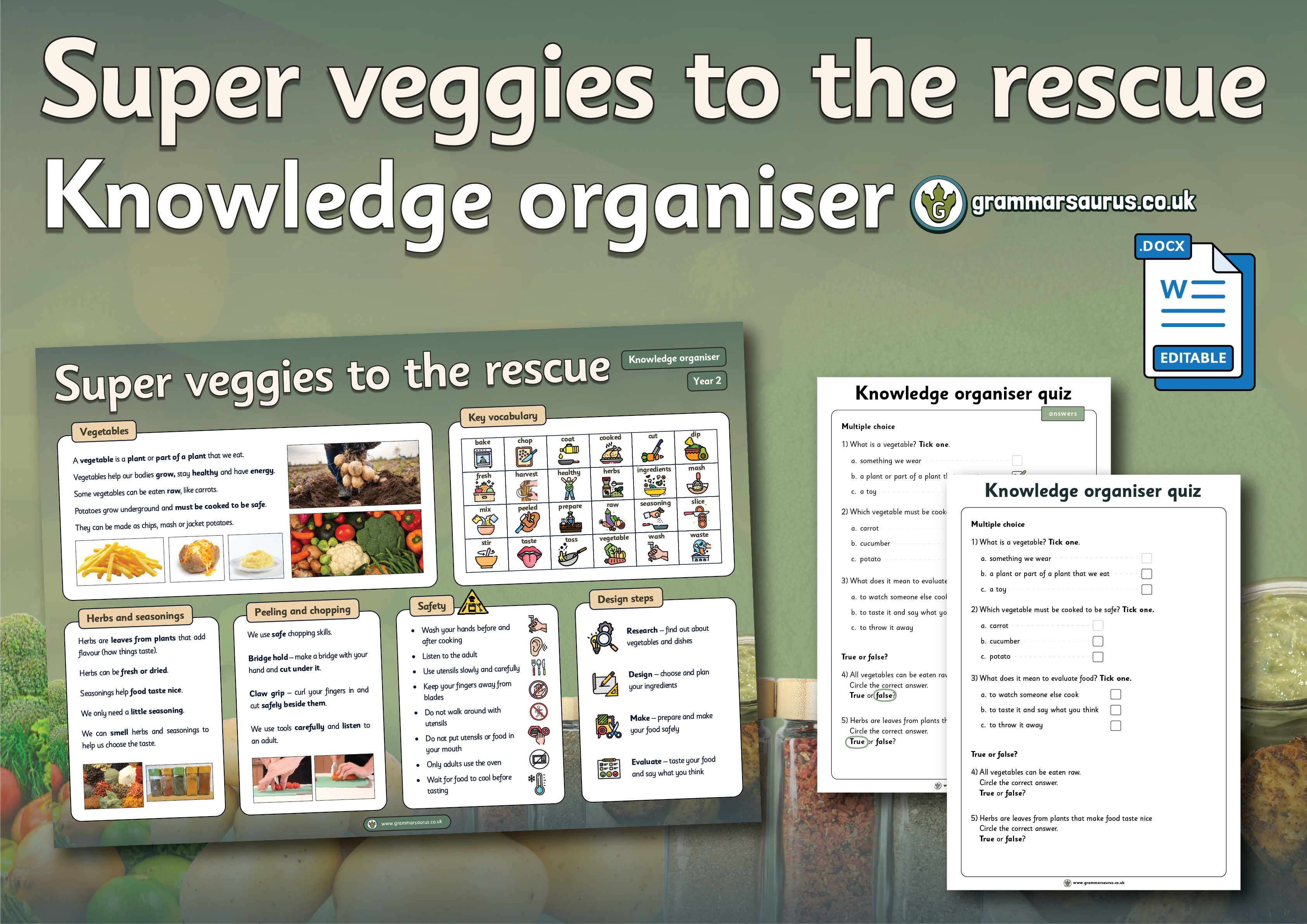 This assessment pack accompanies our Year 2 'Super veggies to the rescue' unit lessons. The file includes the following resources:- 'End of Topic Assessment' worksheets- 'End of Topic Assessment' answers...