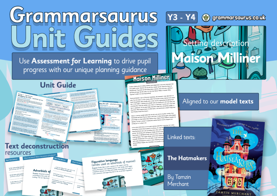 Grammarsaurus unit guides are designed to support teachers in creating a bespoke learning journey for their children. Each step of the journey has its purpose outlined along with our recommendations. Following that, the structure of the step is detailed in an easy-to-follow sequence, and to make things even simpler for you, we’ve exemplified this sequence with a suggested lesson fit for this unit.