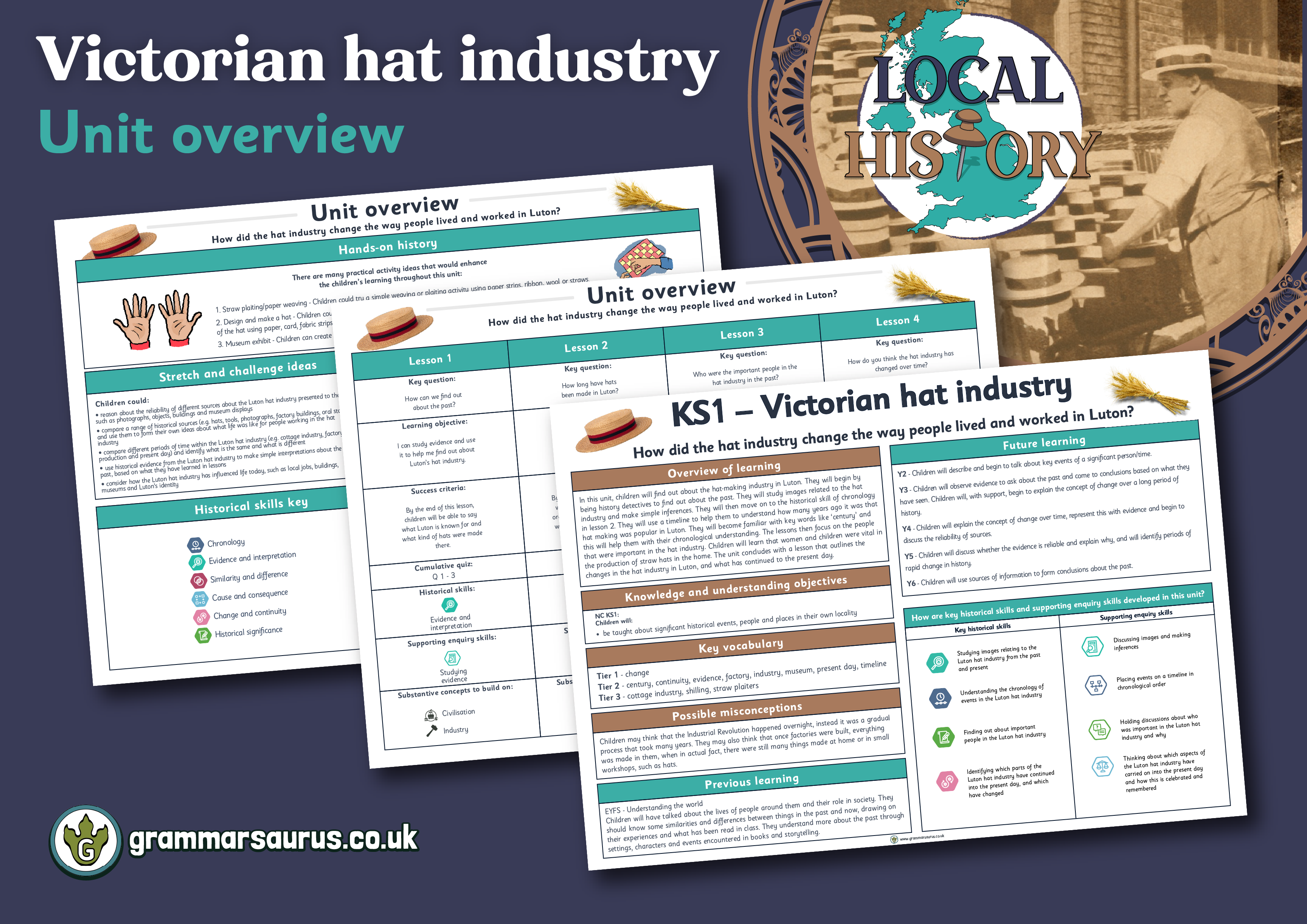 Teachers can use this cumulative quiz and the questions to assess children throughout the KS1 'Victorian Hat Industry' unit. The cumulative quiz and questions can also be used at the end of each lesson to give immediate feedback to inform future planning and identify children who do not understand. This is also available in a one-page document for quick reference. The ‘Ask us this’ document has questions for verbal responses.