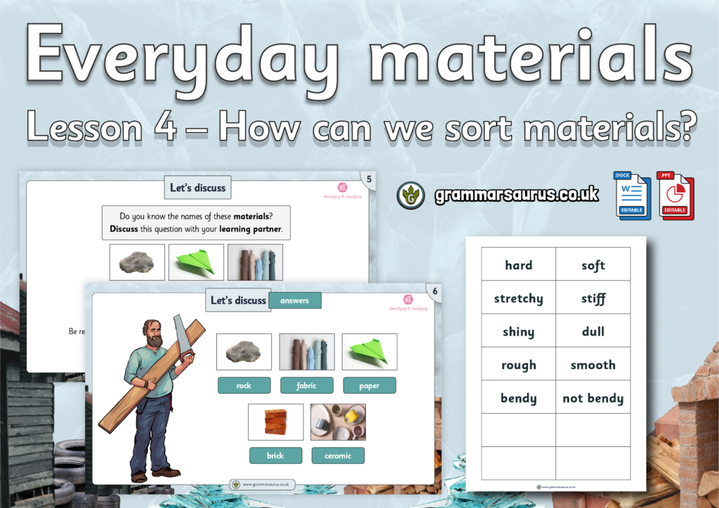 This science lesson focuses on describing the properties of different everyday materials. The file contains the following resources: - editable