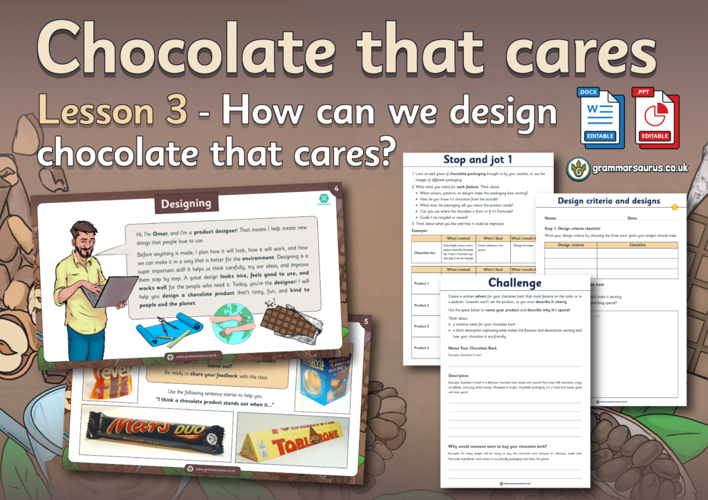 This editable lesson focuses on the core Design and Technology (DT) skill of technical knowledge, guiding children through the bean-to-bar