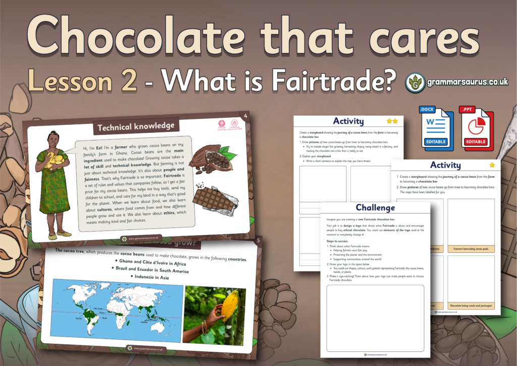 This editable knowledge organiser accompanies our Year 4 ‘Chocolate that cares’ unit lessons. The file includes the following resources: -