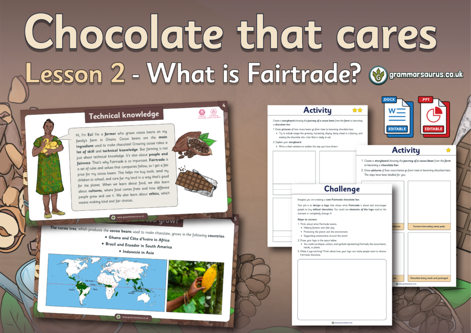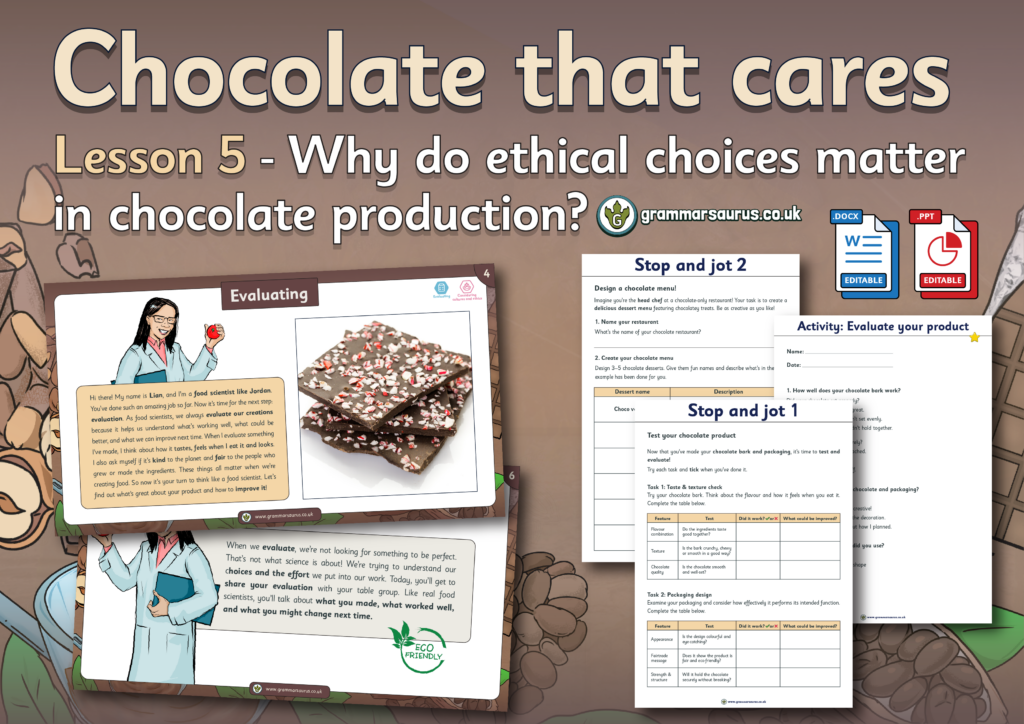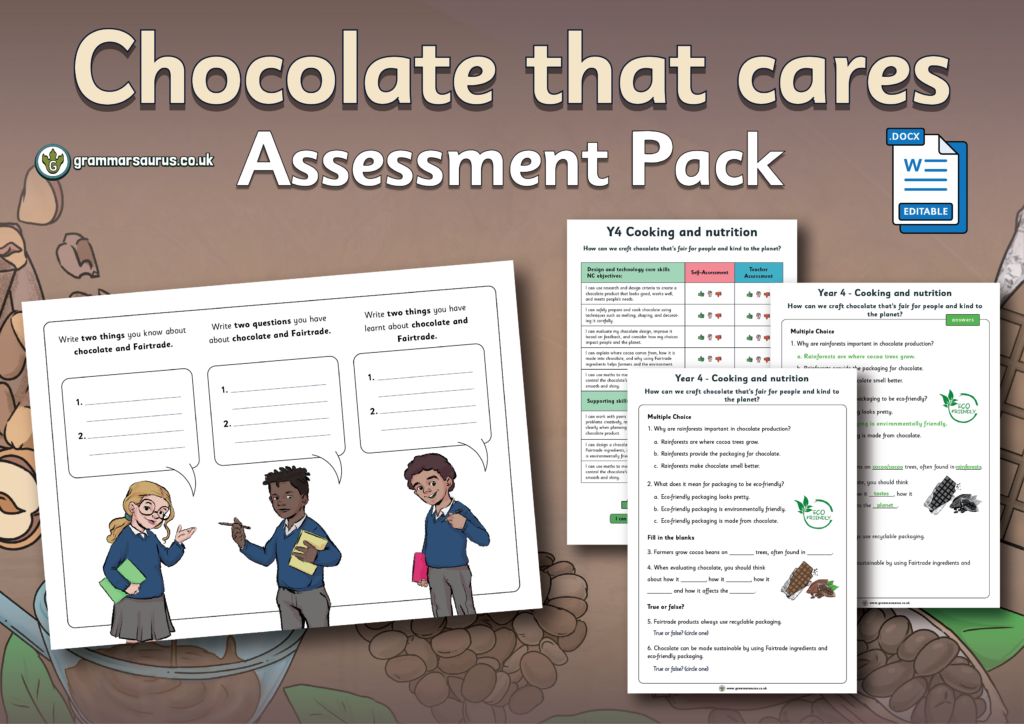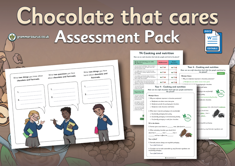 This assessment pack accompanies our Year 4 'Chocolate that cares' unit lessons. The file includes the following resources: - 'End