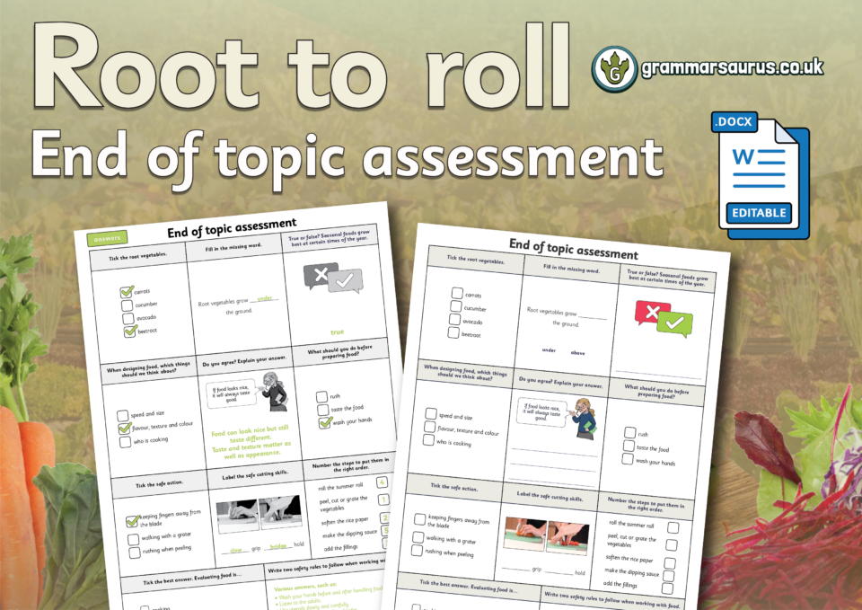 This assessment pack accompanies our Year 3 'Root to roll' unit lessons. The file includes the following resources:- 'End of Topic