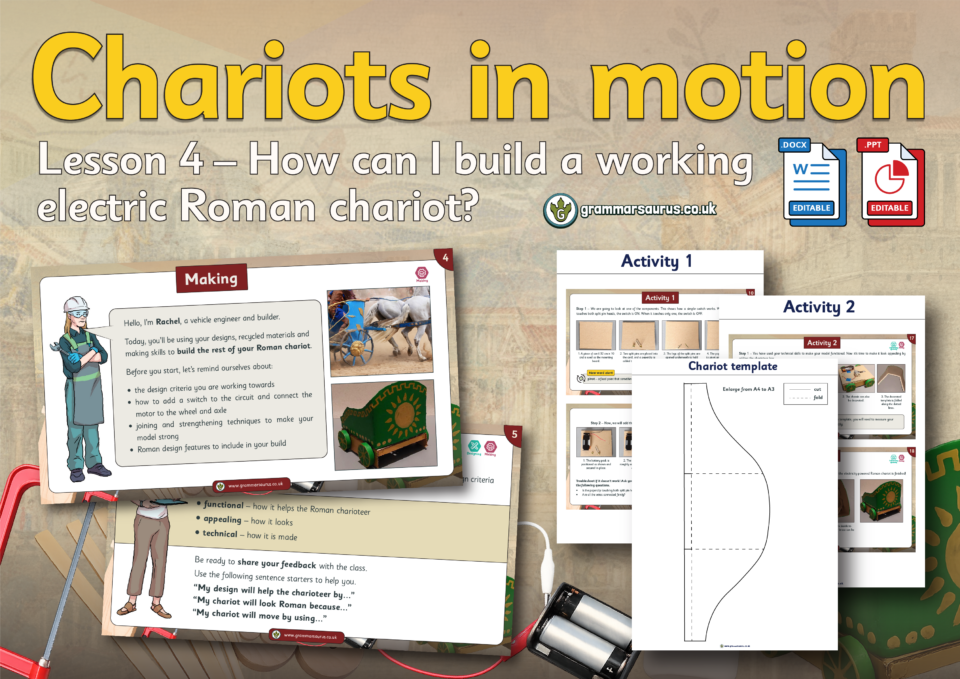These display resources accompany our Year 4 'Chariots in motion' unit lessons.... Hello, Downloads are for members of Grammarsaurus only.